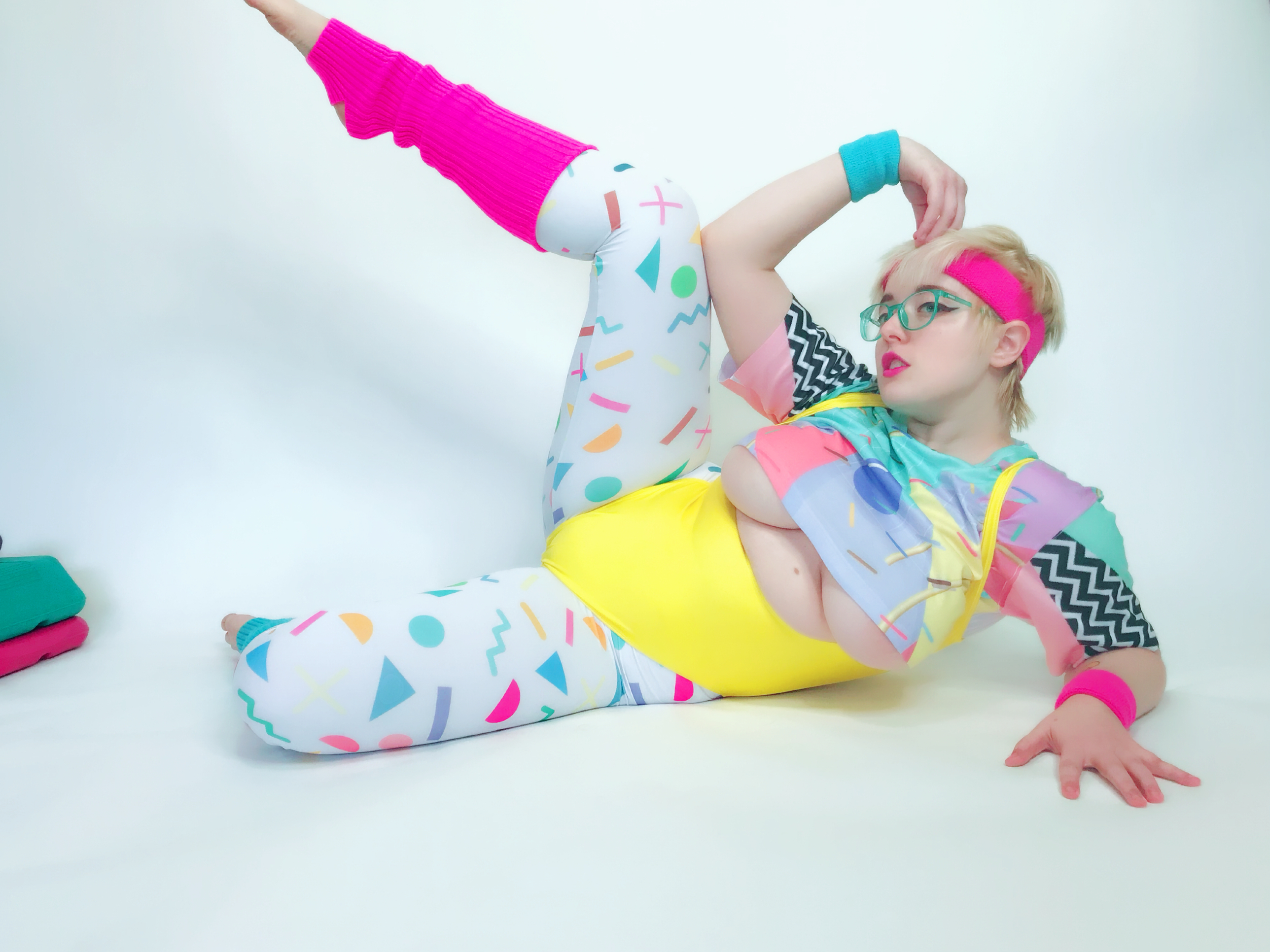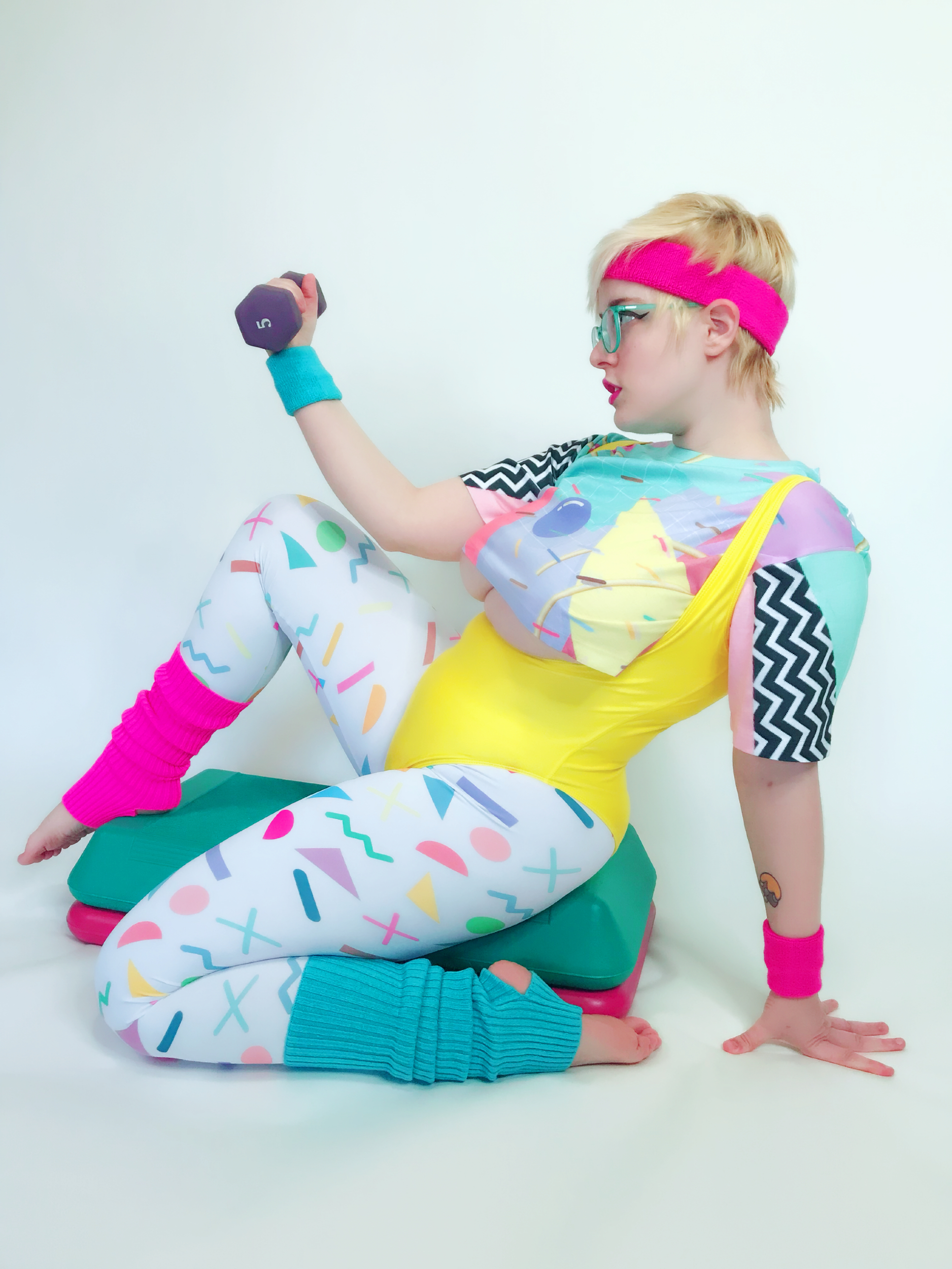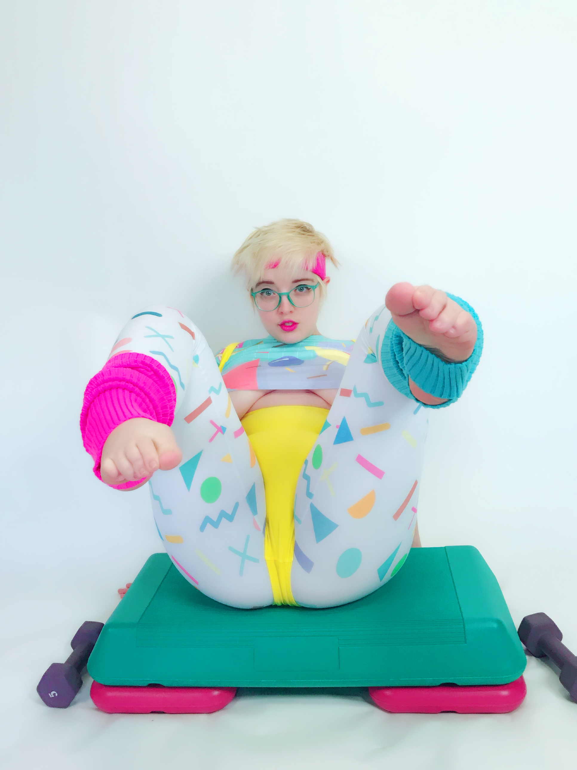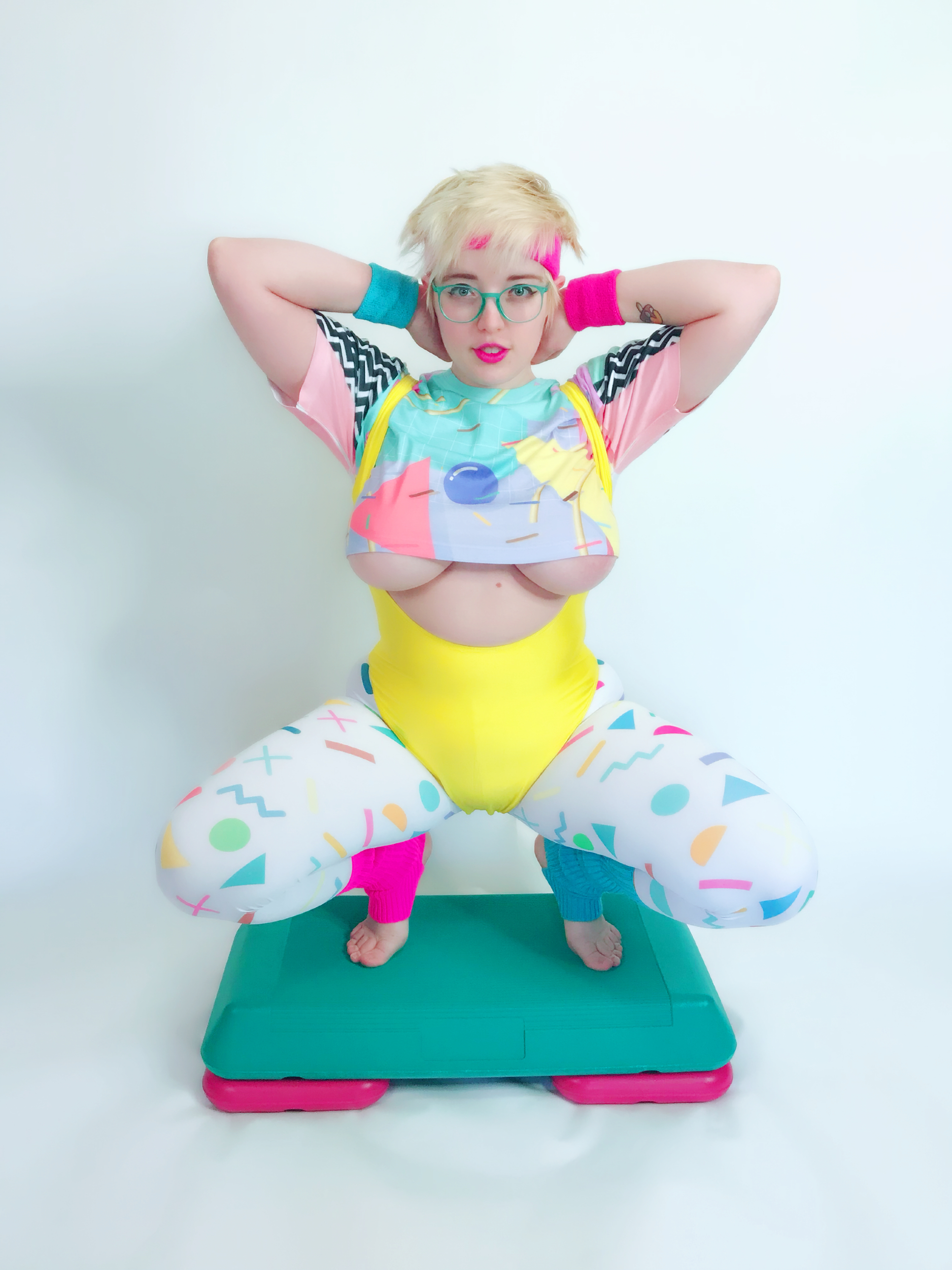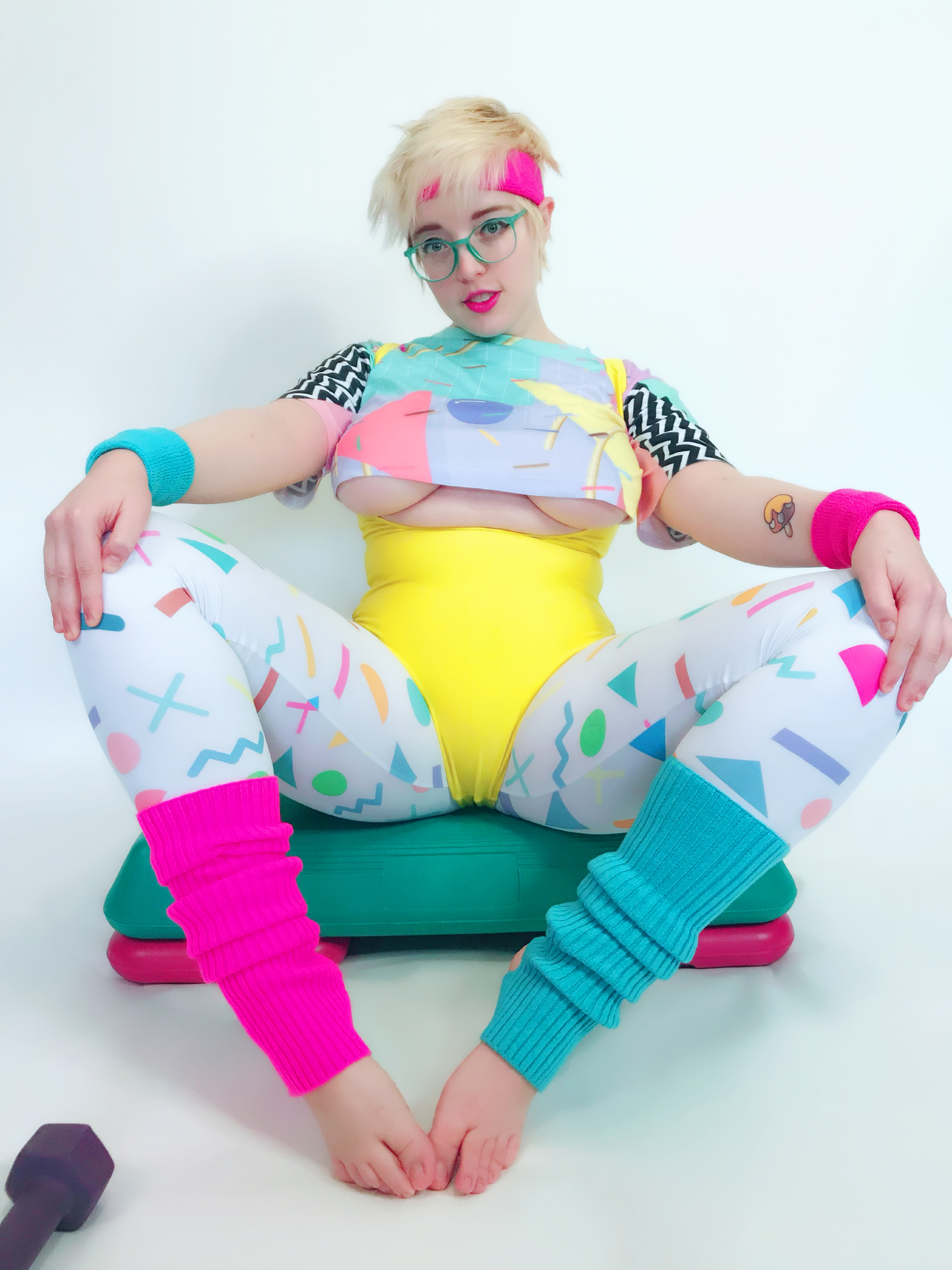 Photo set of MarshmallowMaximus working out dressed in 80's gym cloths