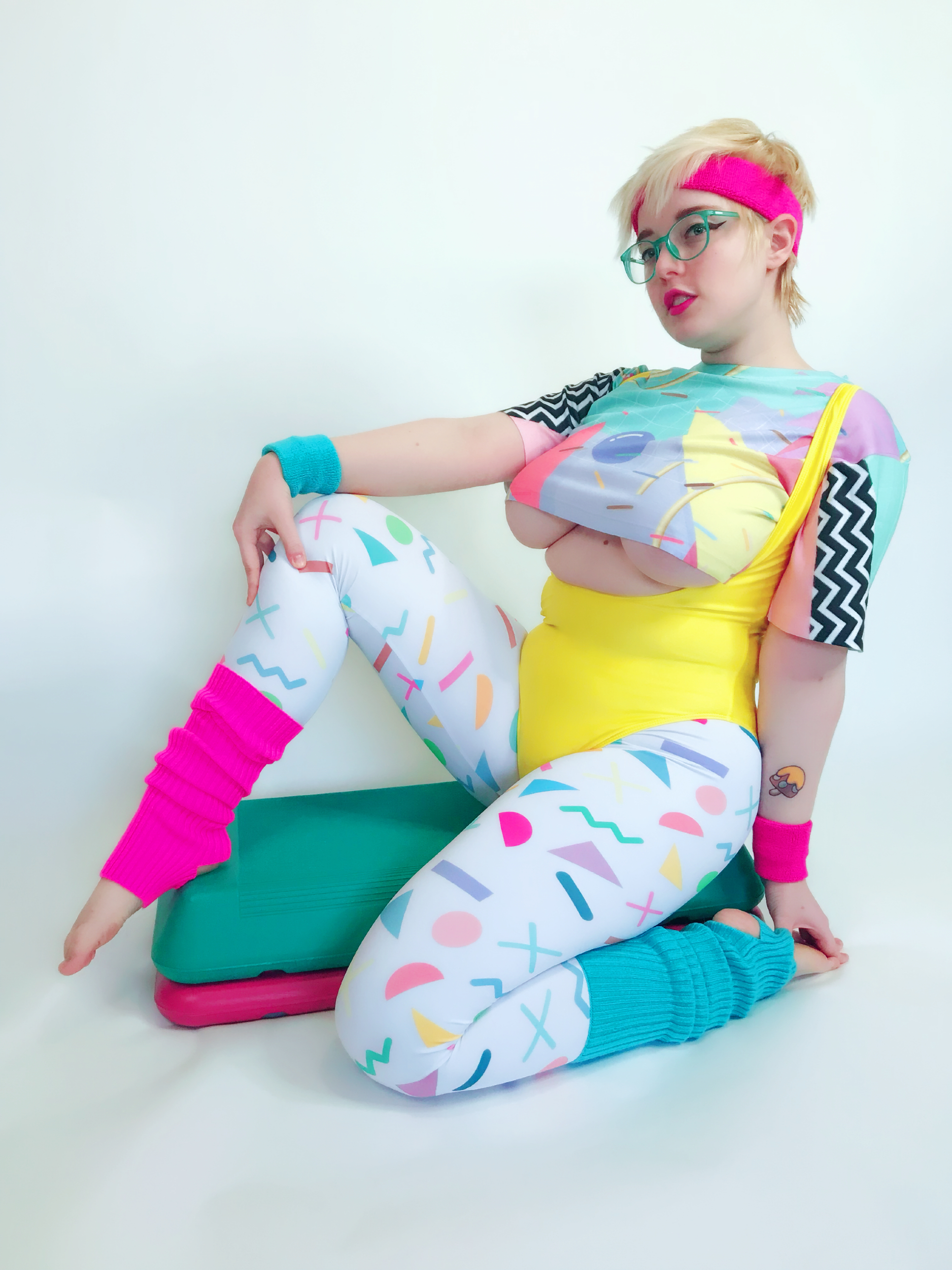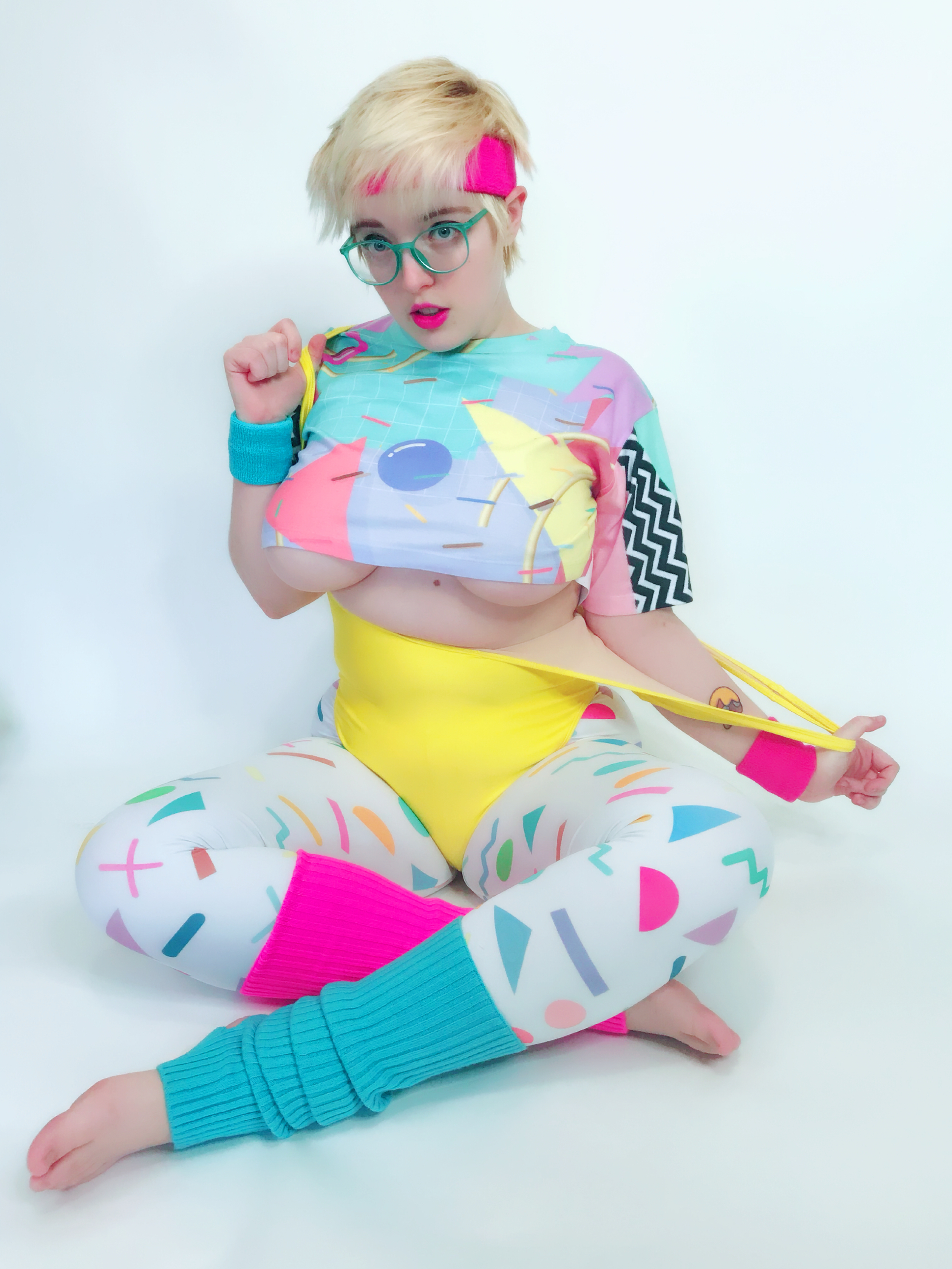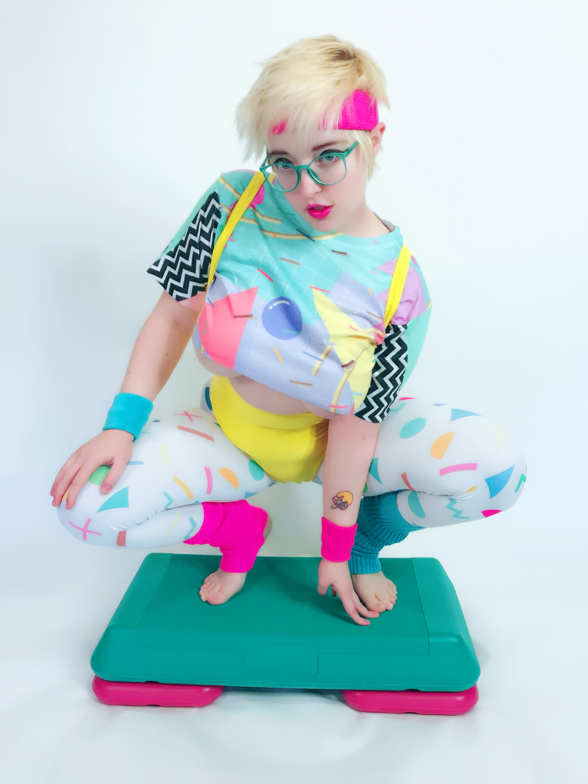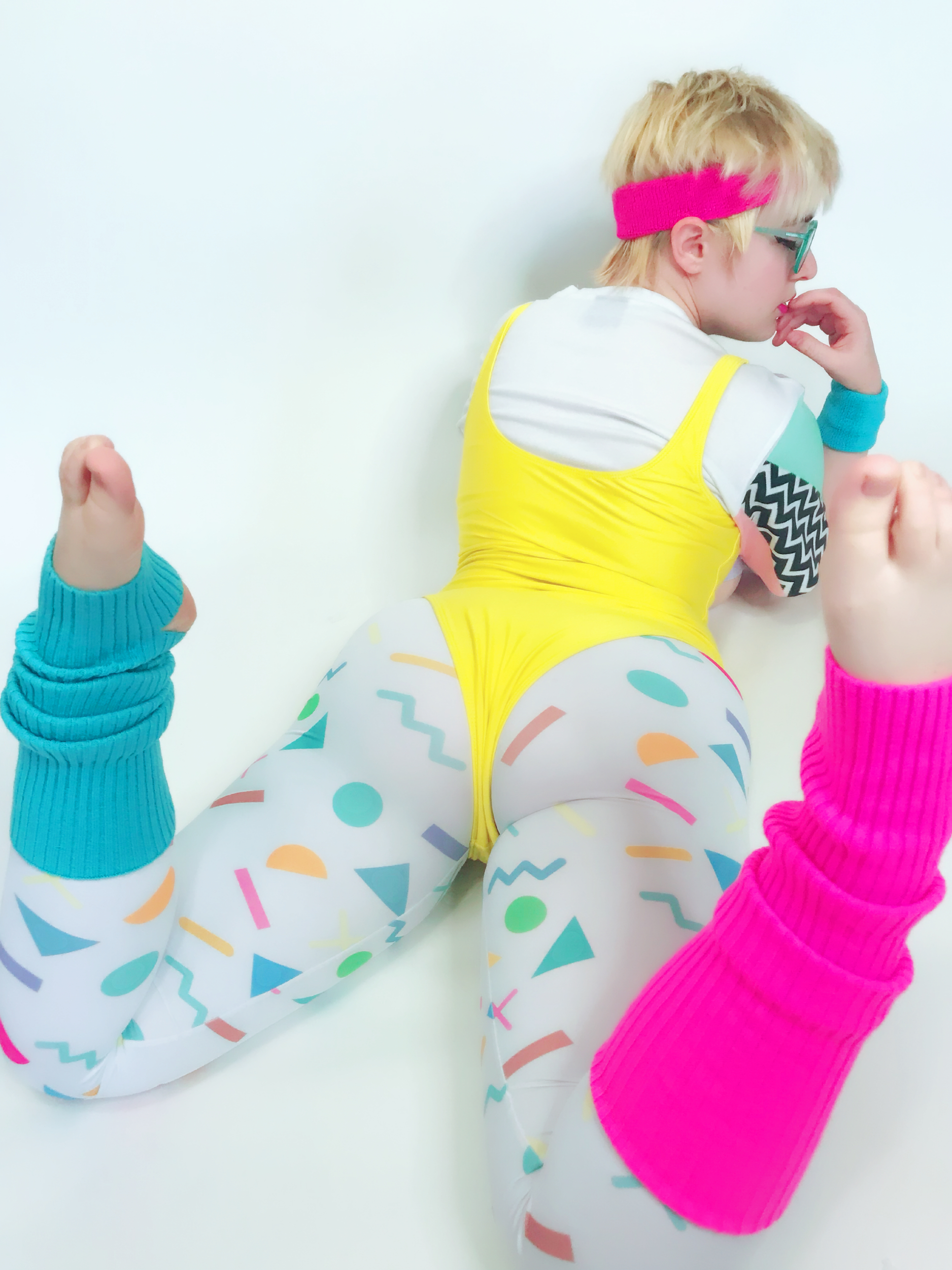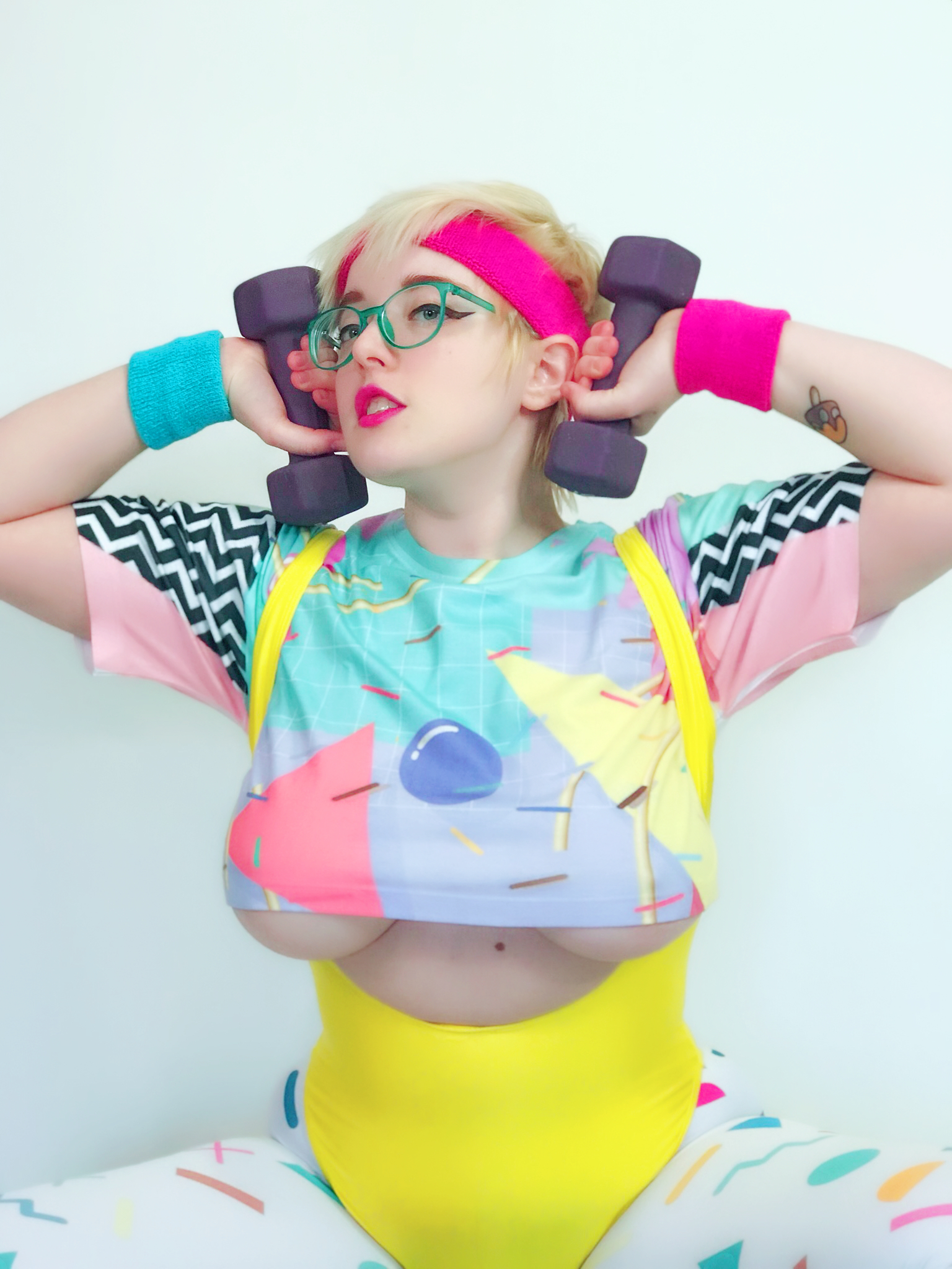Photo set of MarshmallowMaximus working out dressed in 80's gym cloths