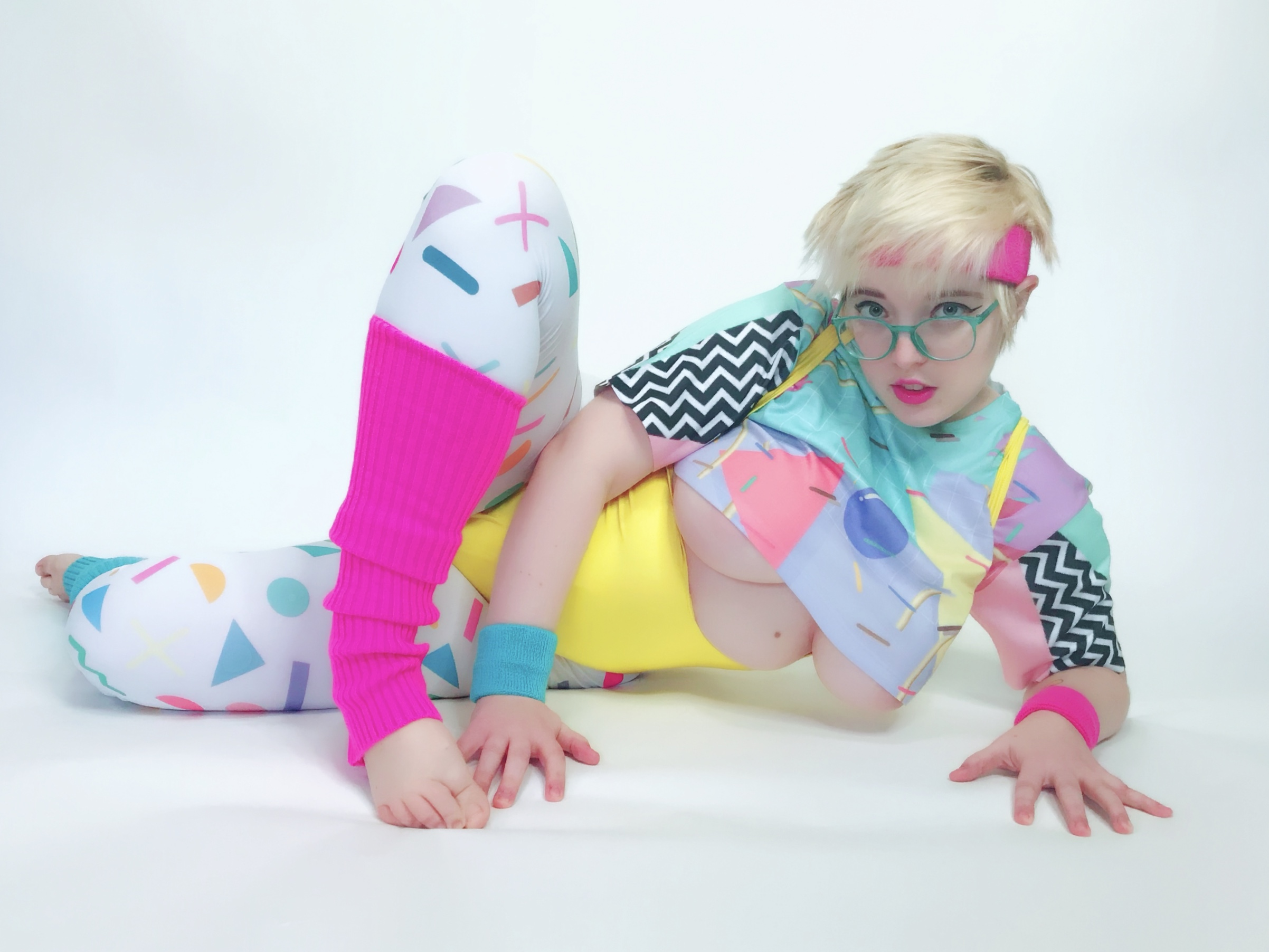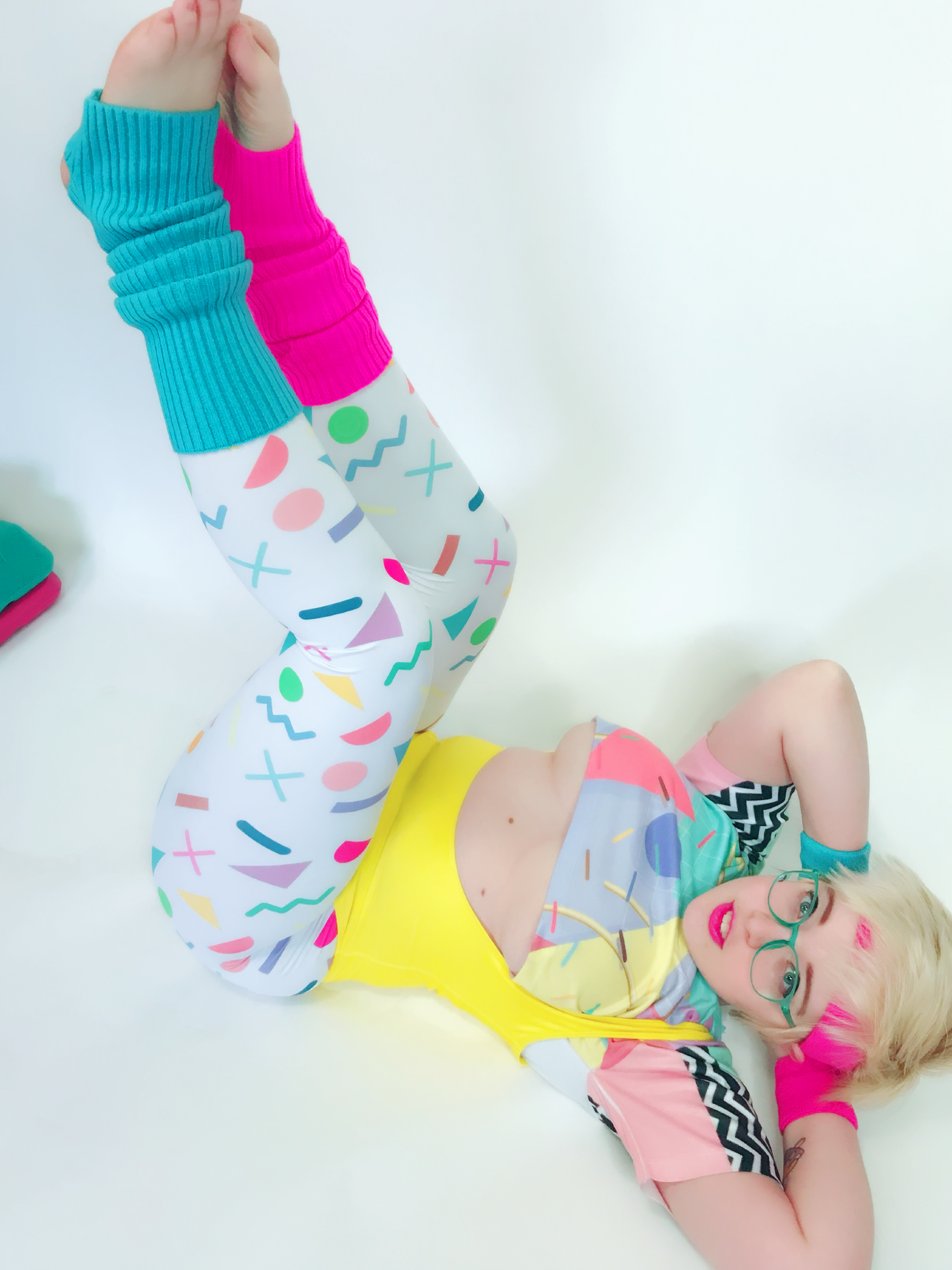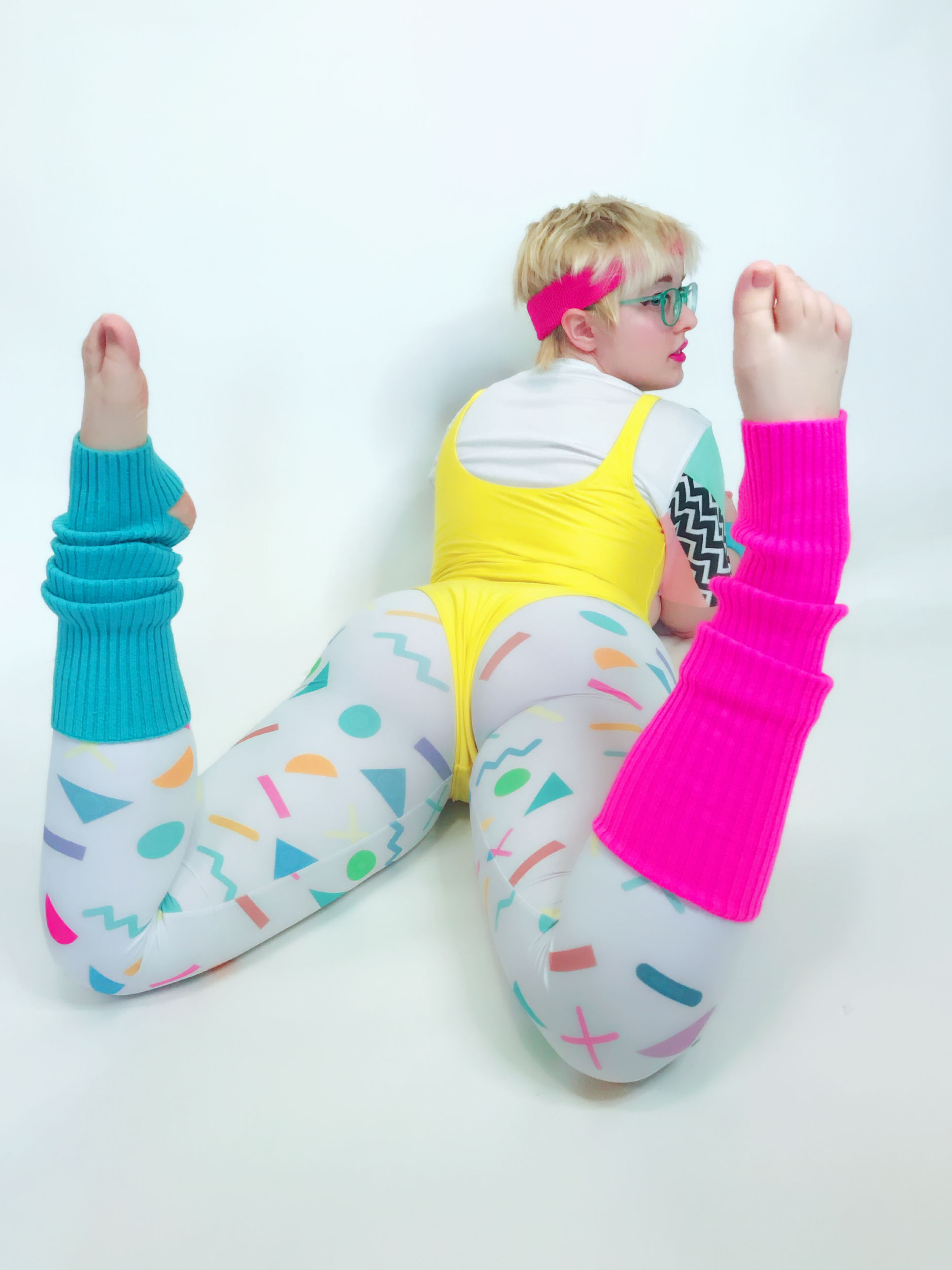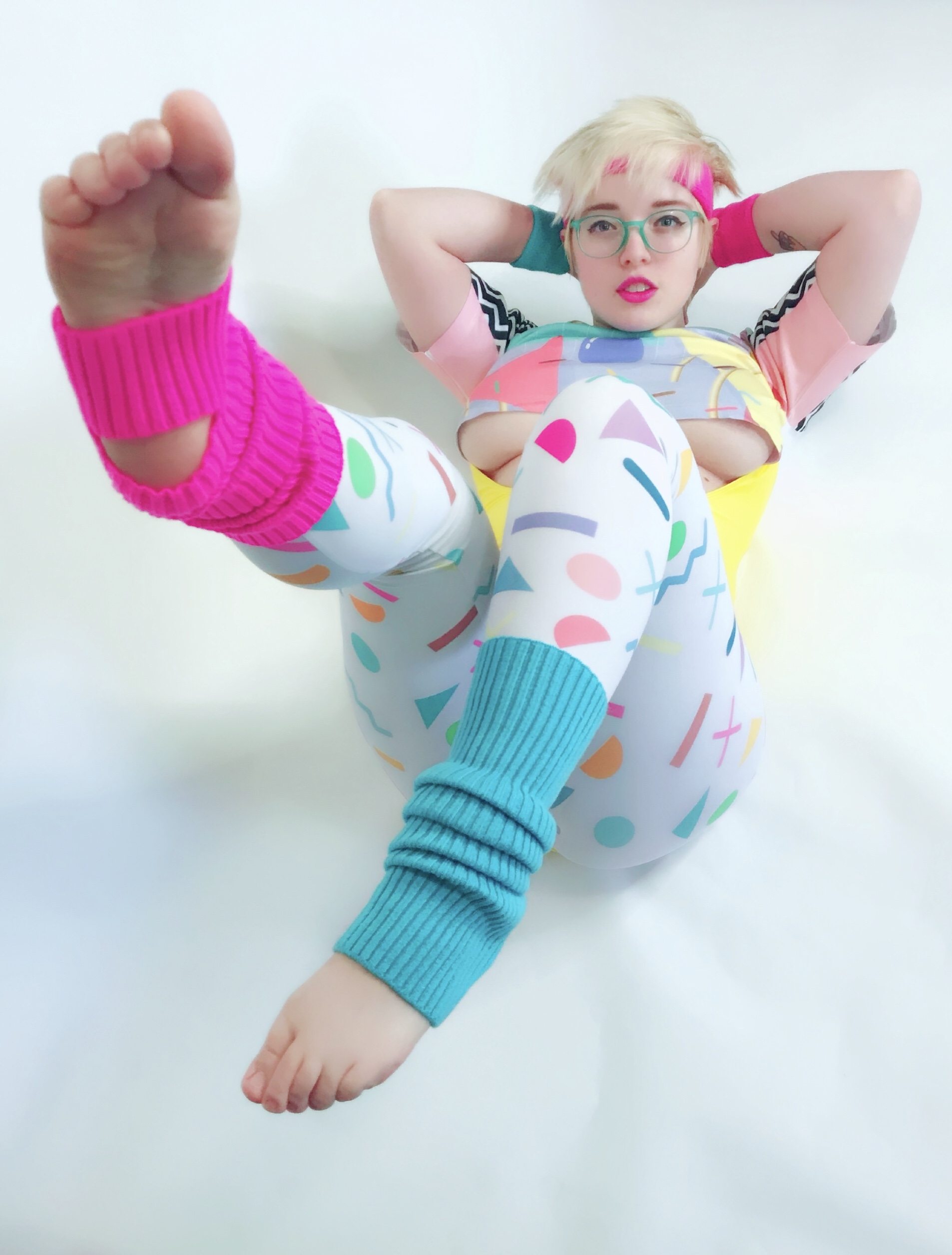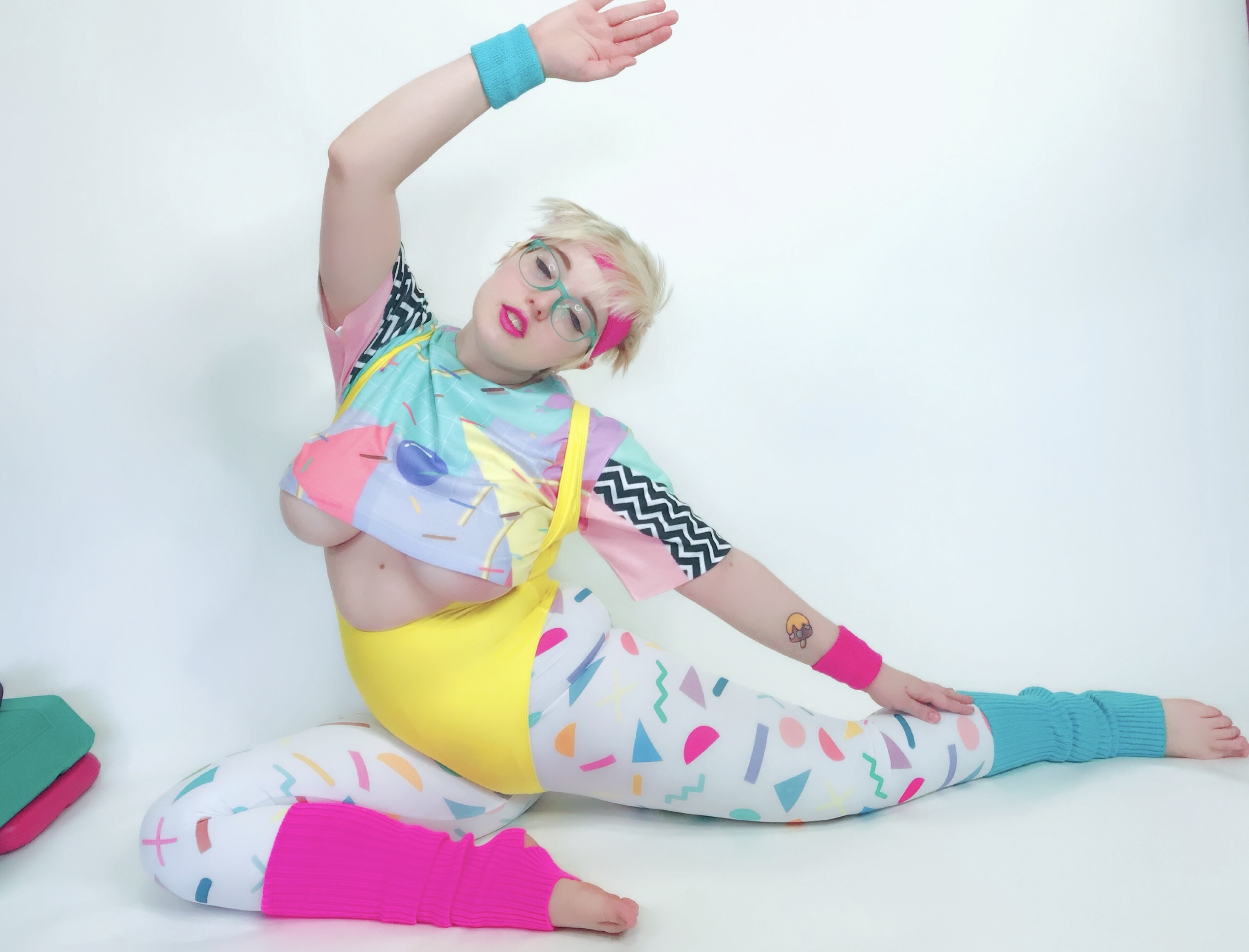 Photo set of MarshmallowMaximus working out dressed in 80's gym cloths